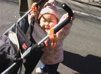 そのくせ、ベビーカーは押して歩きたいらしく押し車のようにしています。