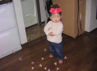 お豆を投げれば投げるほど、鬼は逃げるものですが我が家の可愛い鬼はお豆の方へ、方へと近づいて持てる分だけ手に持って嬉しそうでした![]()